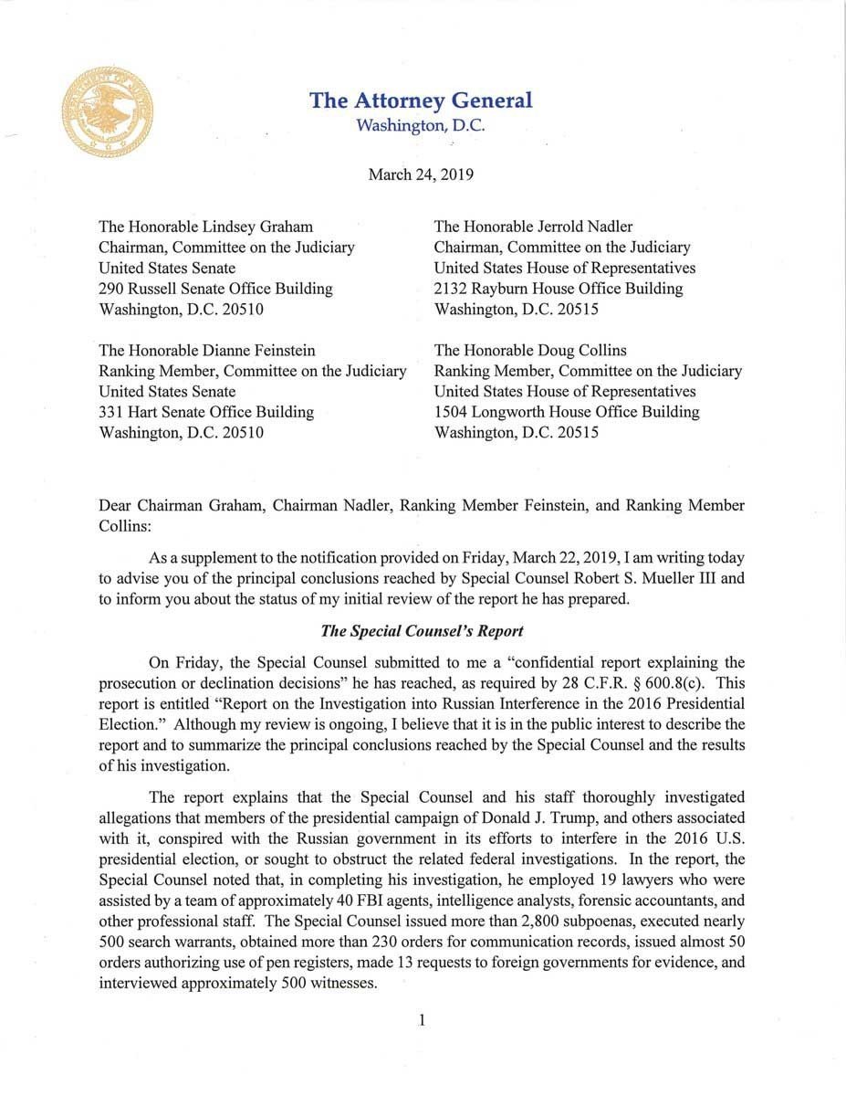 El fiscal general de EE.UU., William Barr, ha presentado al Congreso un resumen de las conclusiones del fiscal especial estadounidense Robert Mueller sobre la supuesta interferencia de Moscú en las elecciones presidenciales de 2016 en EE.UU. Según el documento, la investigación del fiscal especial establece que no hay pruebas de colusión del equipo de Trump con Rusia, entre otras conclusiones.