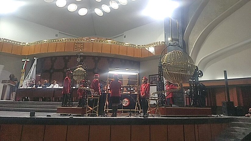 "Demos un aplauso a nuestros emisarios de la suerte y la fortuna, quienes saludarán a cada uno de los integrantes del presídium".