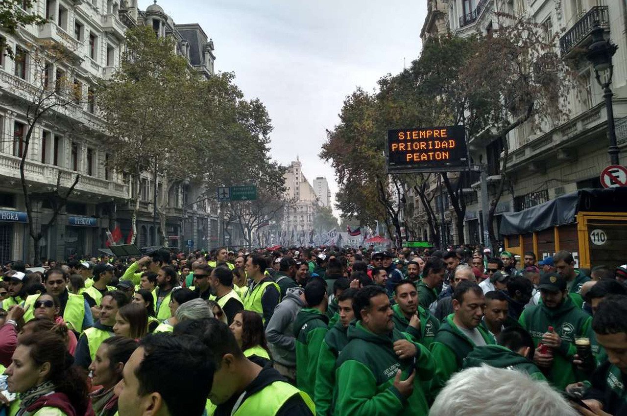 A partir de la 1:00 de la tarde (hora local) se están produciendo actos sindicales y políticos en Plaza de Mayo, frente a la casa de Gobierno, donde miles de personas se manifiestan contra la política económica actual. A unas cinco cuadras del escenario, la inmensa cantidad de gente hace que sea difícil moverse. Las banderas, los bombos, trompetas y el olor a hamburguesas adornar la movilización.