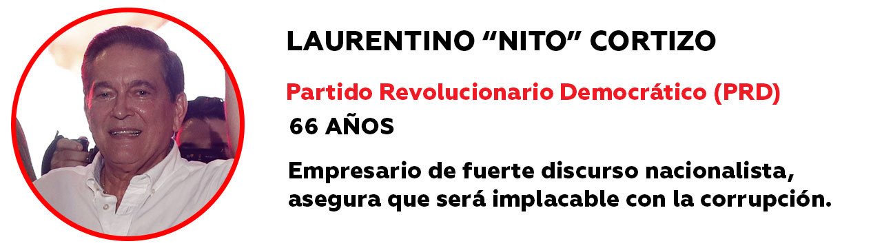 En primer lugar aparece el competidor del opositor Partido Revolucionario Democrático (PRD), el más popular del país, Laurentino "Nito" Cortizo, quien de acuerdo a los sondeos cuenta con una intención de voto de entre el 27 y el 49%.