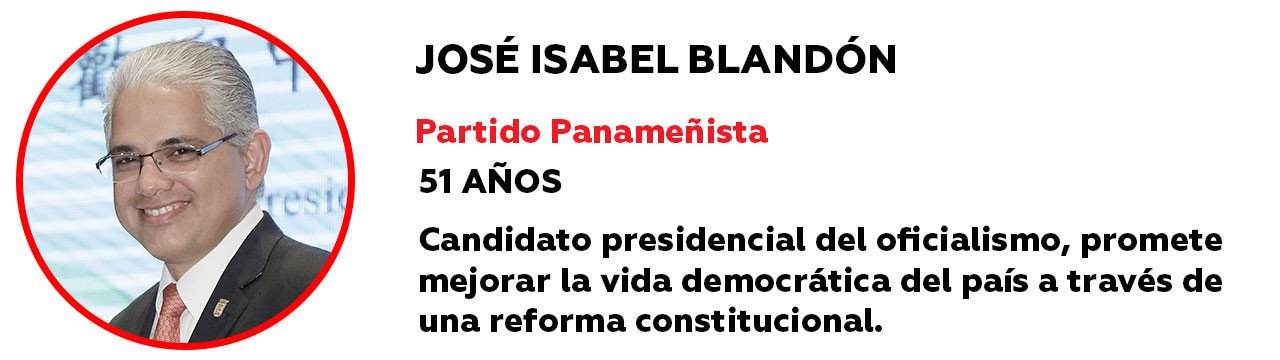 José Isabel Blandón encarna la apuesta del gobernante Partido Panameñista, y aunque promete un "cambio profundo", arrastra la imagen negativa del oficialismo. Las consultoras políticas lo colocan en un tercer o cuarto puesto, con una intención de voto cercana a 10 %.