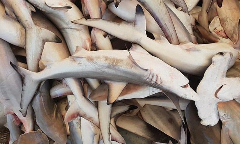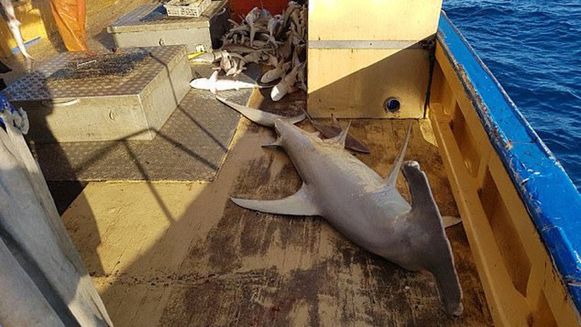 Las fotografías, obtenidas a inicios de año, muestran decenas de tiburones apilados sobre la cubierta de un barco que faenaba en la Gran Barrera de Coral australiana, y en cuyas redes quedaron atrapados los escualos, informa la página web de WWF.