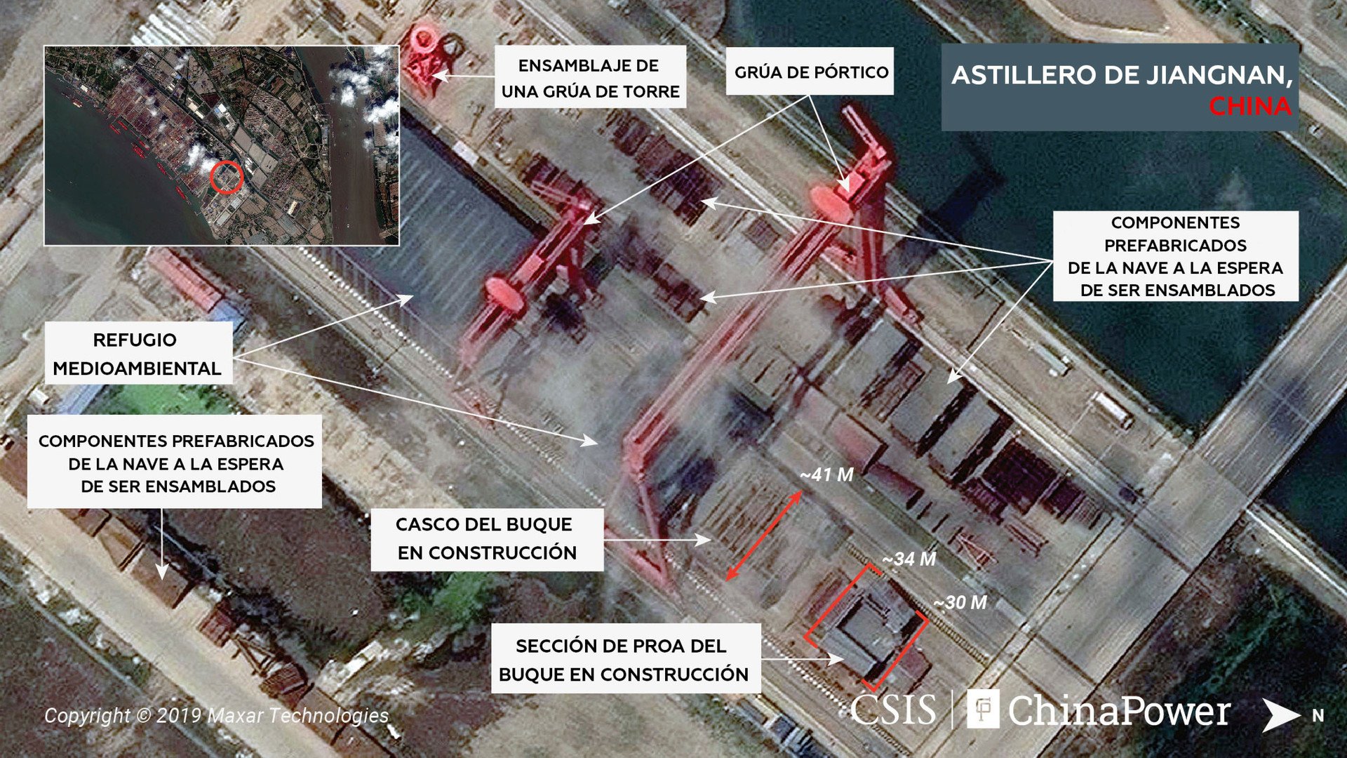 China no ha confirmado formalmente que está construyendo su tercer portaviones, pese a las recientes indicaciones en los medios estatales, y el estado del proyecto sigue siendo clasificado. El Pentágono señaló la semana pasada que los trabajos están en marcha, pero hasta ahora no habían trascendido imágenes.