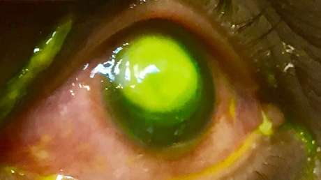 Patrick Vollmer, oftalmólogo de la clínica Vita Eye, diagnosticó a la paciente con una queratitis ocasionada por la proliferación de bacilos del género pseudomonas, una condición comúnmente asociada al uso de lentes de contacto y que potencialmente puede causar la pérdida permanente de la vista.