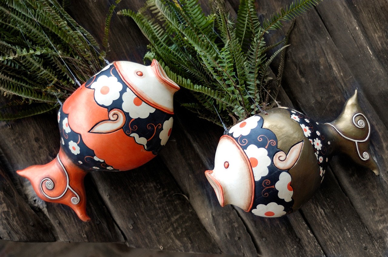 García no solo pinta, hace el tiesto desde cero. "Modelo la maceta en la cerámica y de esa pieza única saco un molde, para ciertas reproducciones, no muchas [...] de esas reproducciones, en la fase de pintura, les pinto diseños diferentes, entonces creo varios diseños de la misma pieza", detalla. En su taller hay materas de diferentes formas, como velas, medias, calzones, carteras.