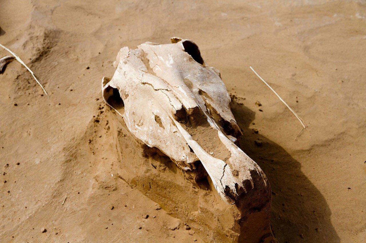Cerca de una de las tumbas se descubrió asimismo una cabeza de caballo con un aparejo ricamente decorado, lo que sugiere que el difunto tenía un alto estatus social.