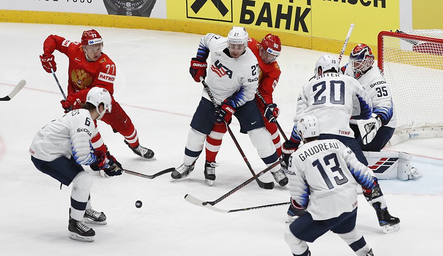 La selección rusa de hockey sobre hielo ha derrotado este jueves a EE.UU. en el partido correspondiente a los cuartos de final del Campeonato Mundial, que se celebra en Eslovaquia del 10 al 26 de mayo.