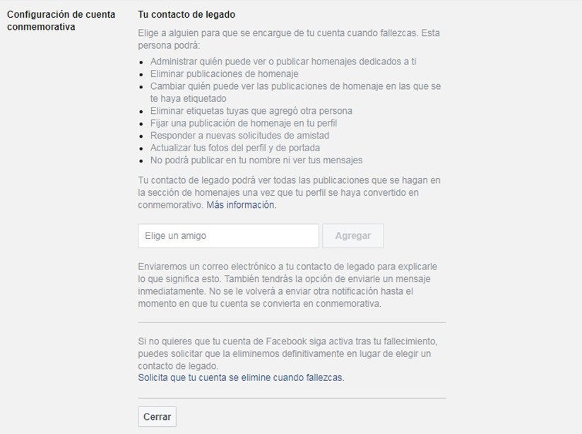 Convertir un perfil de Facebook en una página conmemorativa o eliminar su contenido después de la muerte del usuario es posible, ya que la red social creada por Mark Zuckerberg ofrece la posibilidad de configurar la cuenta para designar a un amigo que tome esa decisión.
