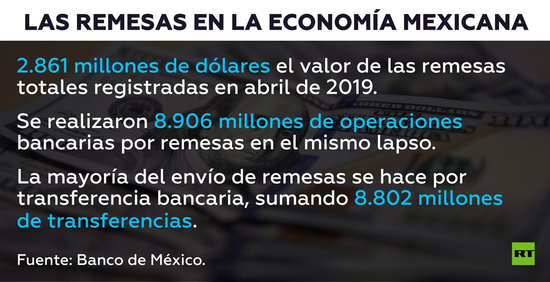 En abril de 2019, el flujo de remesas familiares fue 2.861 millones de dólares, lo que significó 3,6 % más que en el mismo periodo del año pasado, de acuerdo con información dada a conocer este lunes por el Banco de México (Banxico).