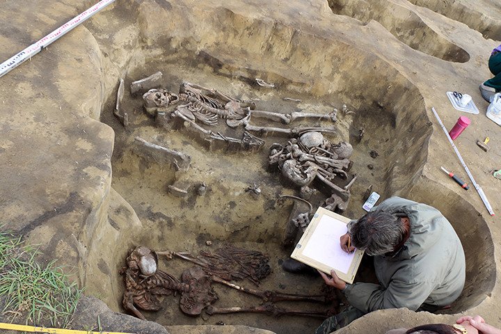 Las sepulturas fueron descubiertas a finales del año pasado en un sitio arqueológico conocido como Ust-Tartas por investigadores del Instituto de Arqueología y Etnografía de Novosibirsk. Las tumbas datan de hace unos 5.000 años, y en una de ellas los especialistas encontraron el esqueleto de un hombre con una especie de collar, capucha o armadura hecha con decenas de picos y cráneos de aves.