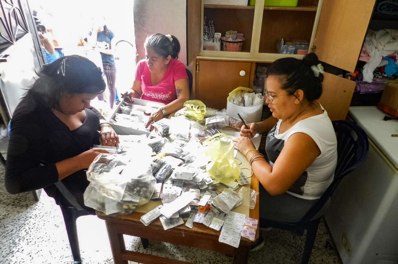 Betsy Rebolledo corta blisters de medicinas mientras se cerciora, una y otra vez, de que los nombres y las cantidades de medicamentos estén en una hoja de cálculo. Llegar a esta escena llevó meses de recorridos en su comunidad, reuniones, debates y planificación.