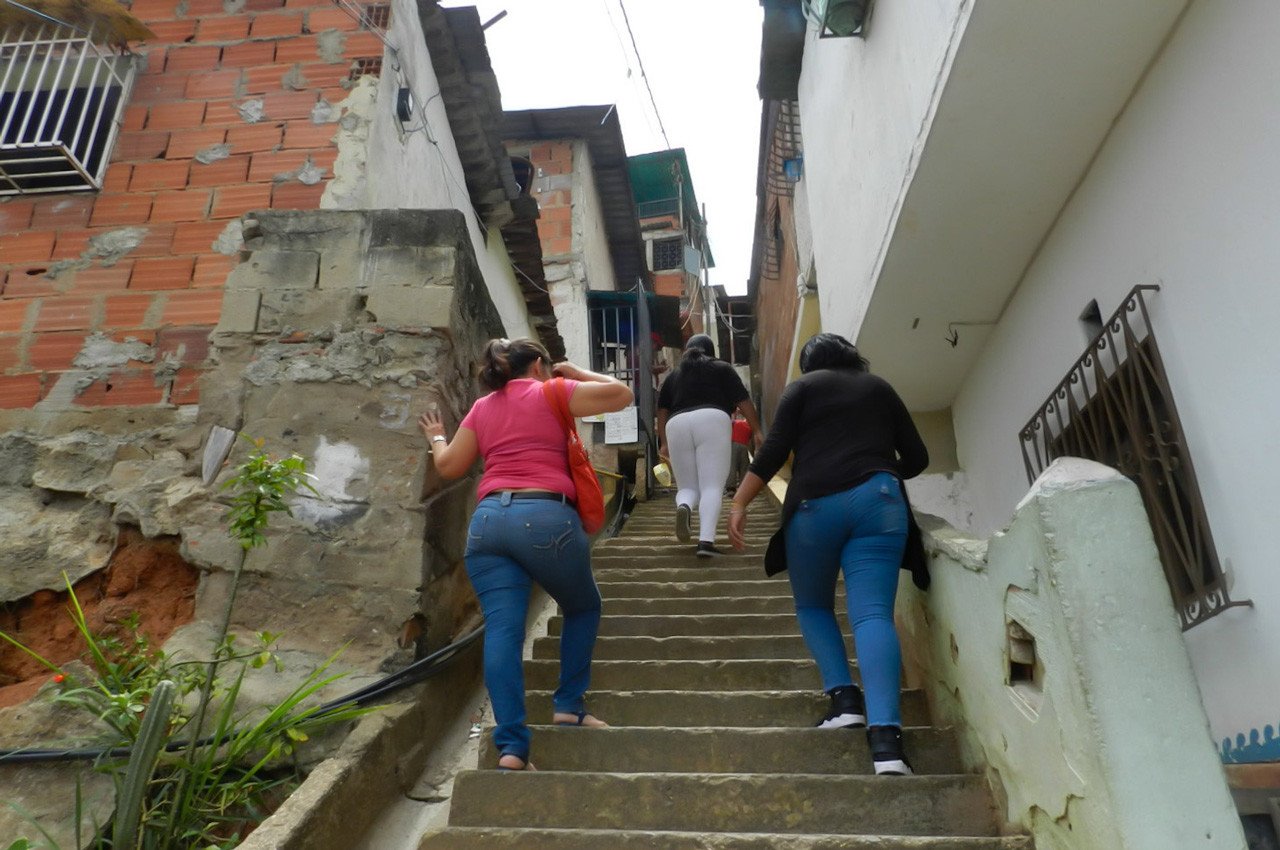 Mientras más arriba, más laberíntico se hace el camino hecho de escalones. De frente, la montaña que señala el norte de la capital, surcada por casas humildes de ladrillo y techos de zinc. Todos saludan a la doctora en su recorrido. Ella se detiene, aclara dudas y sigue.
