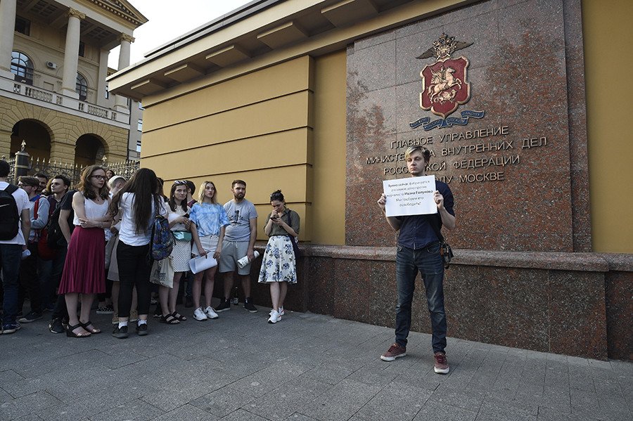 Una serie de piquetes en apoyo al periodista han tenido lugar cerca del edificio del Ministerio del Interior en la capital rusa.