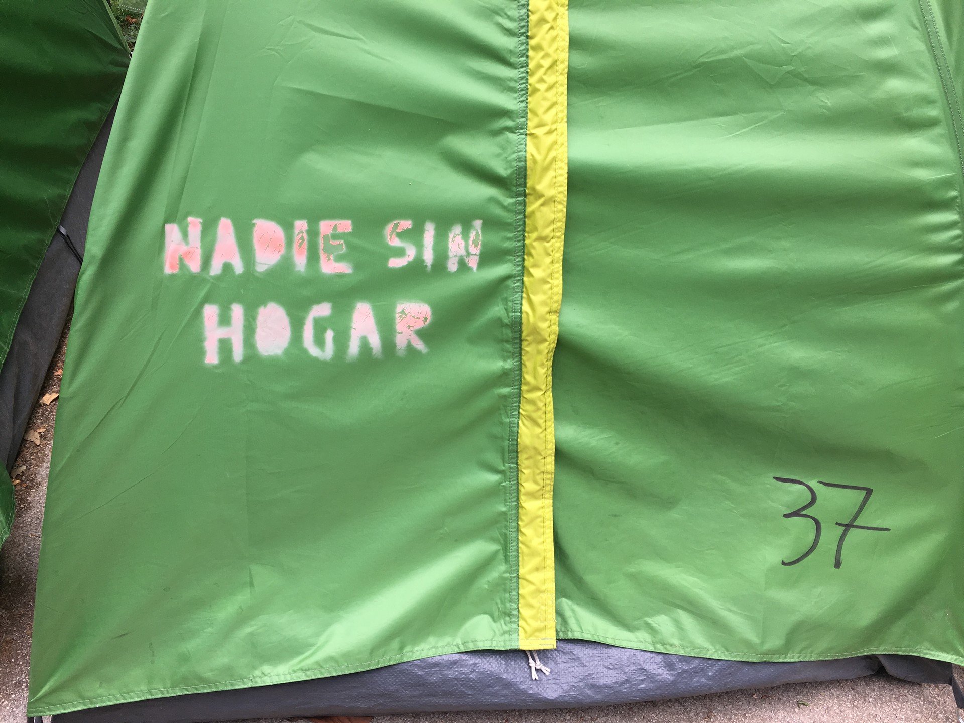 Javier insiste en que lo único que piden los concentrados en esta acampada es "que se cumplan los artículos de la Constitución, no es más que eso", y recuerda que "hay 32.000 personas en la calle y varios millones de pisos vacíos". "¿Que hacen con esos pisos? ¿Especular? Entonces, ¿también especulan con la pobreza?", pregunta retóricamente este joven sintecho.