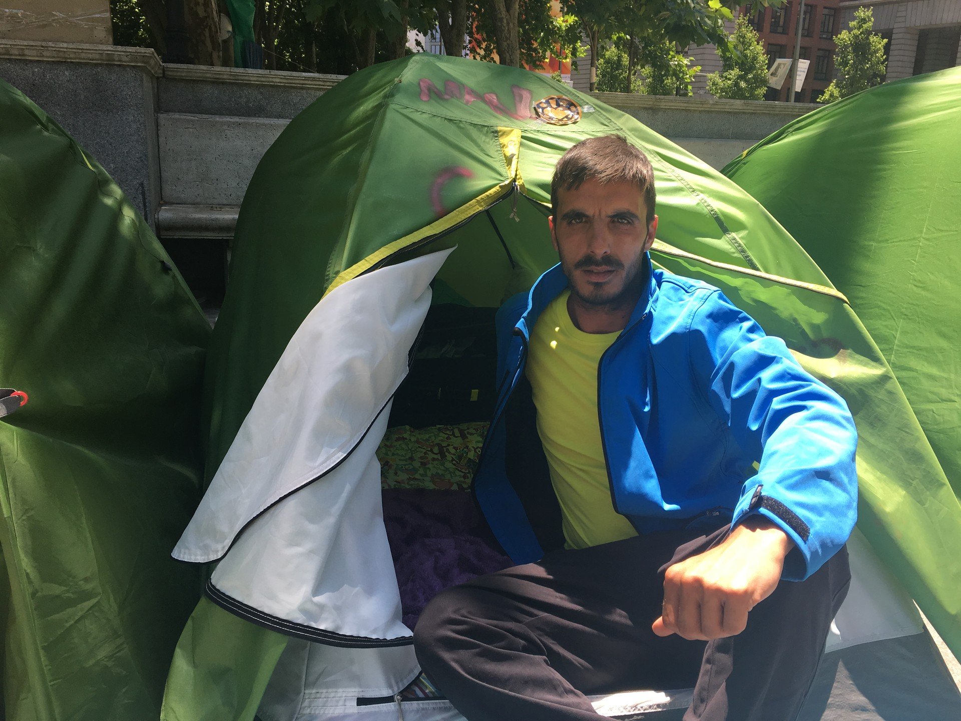Alejandro, otro de los acampados frente al Ministerio de Sanidad, Consumo y Bienestar Social, destaca la necesidad de que el Gobierno español haga efectiva "la protección física y psíquica" de las personas y, en ese sentido, señala la necesidad de tener un programa de viviendas sociales.
