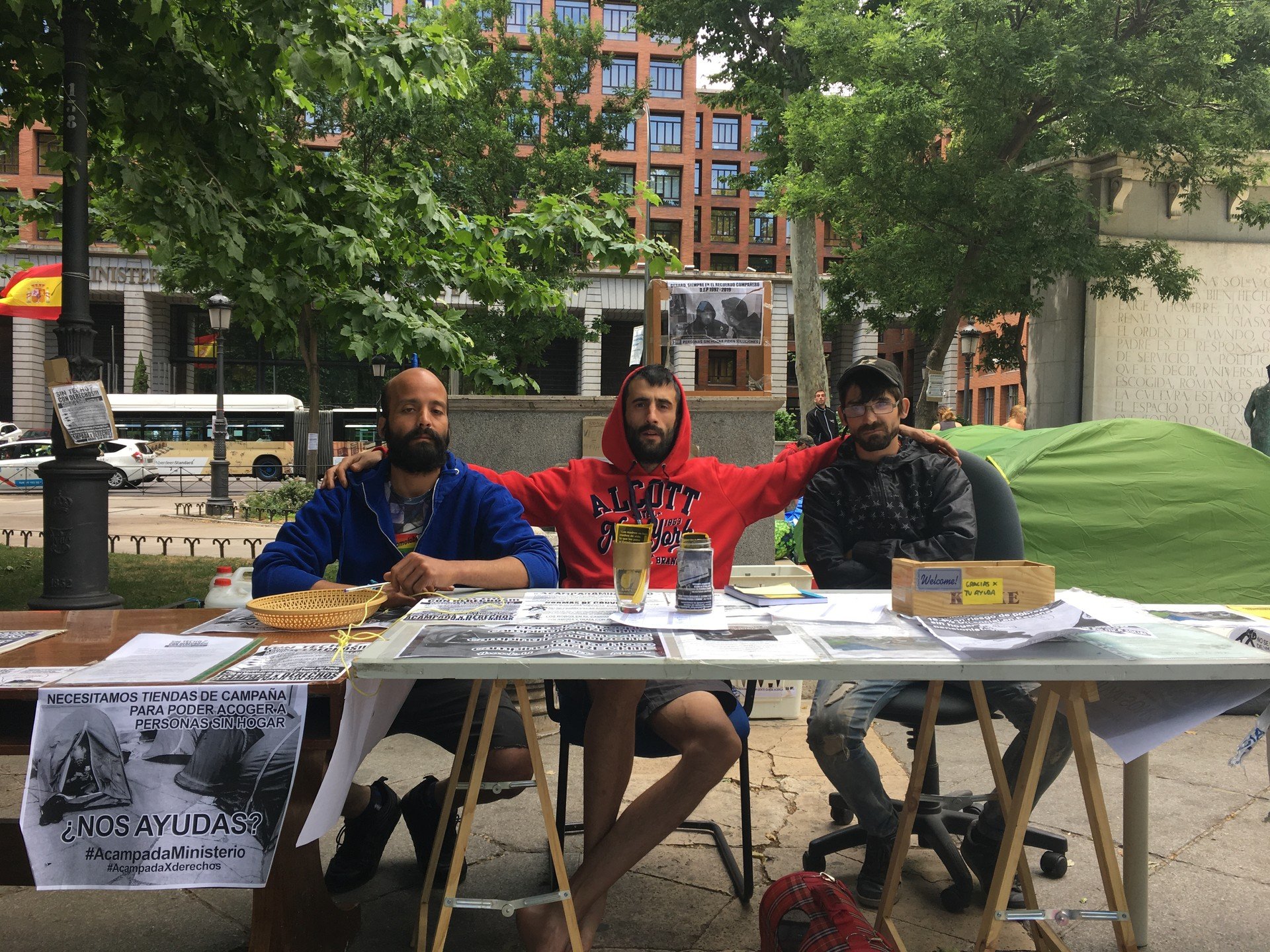 Hace dos meses, alrededor de 20 personas sin hogar se acamparon frente a la sede del Ministerio de Sanidad, Consumo y Bienestar Social de España, en pleno centro de Madrid, para reivindicar medidas que hagan posible el cumplimiento del Artículo 47 de la Constitución de ese país: "Todos los españoles tienen derecho a disfrutar de una vivienda digna y adecuada".