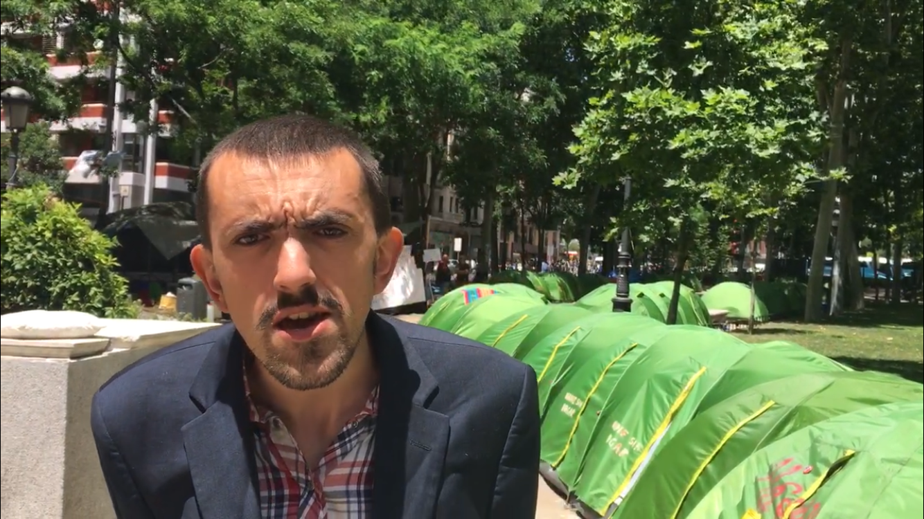 A Pablo, otro de los acampados aquí, no le gusta demasiado esa visita. "Ese hombre ha venido aquí a especular, a coger votos, a decirnos que nos va a dar un mundo mejor cuando es mentira", asegura, con una desconfianza casi despectiva. "Sigue habiendo casas vacías, hay 300.000 casas vacías en Madrid y, si ese hombre quisiera hacer algo, ahora mismo vendría aquí con llaves de pisos para la gente y no a pasar por aquí con su coche a darnos ánimos", protesta.
