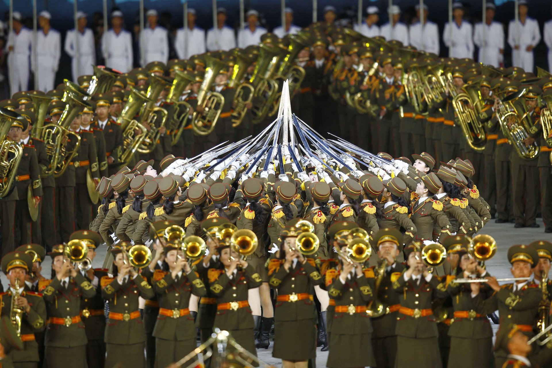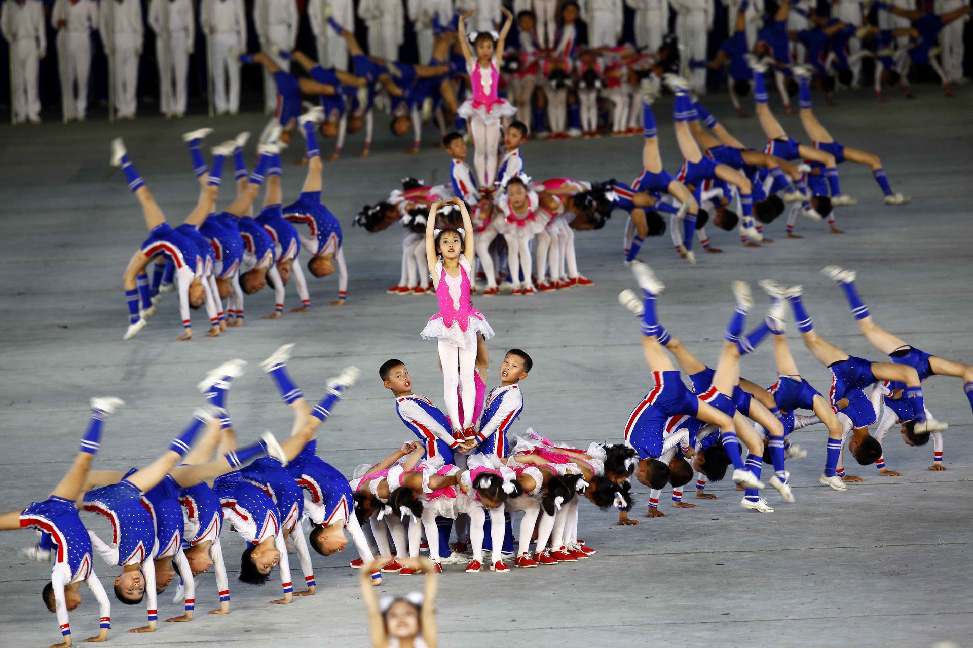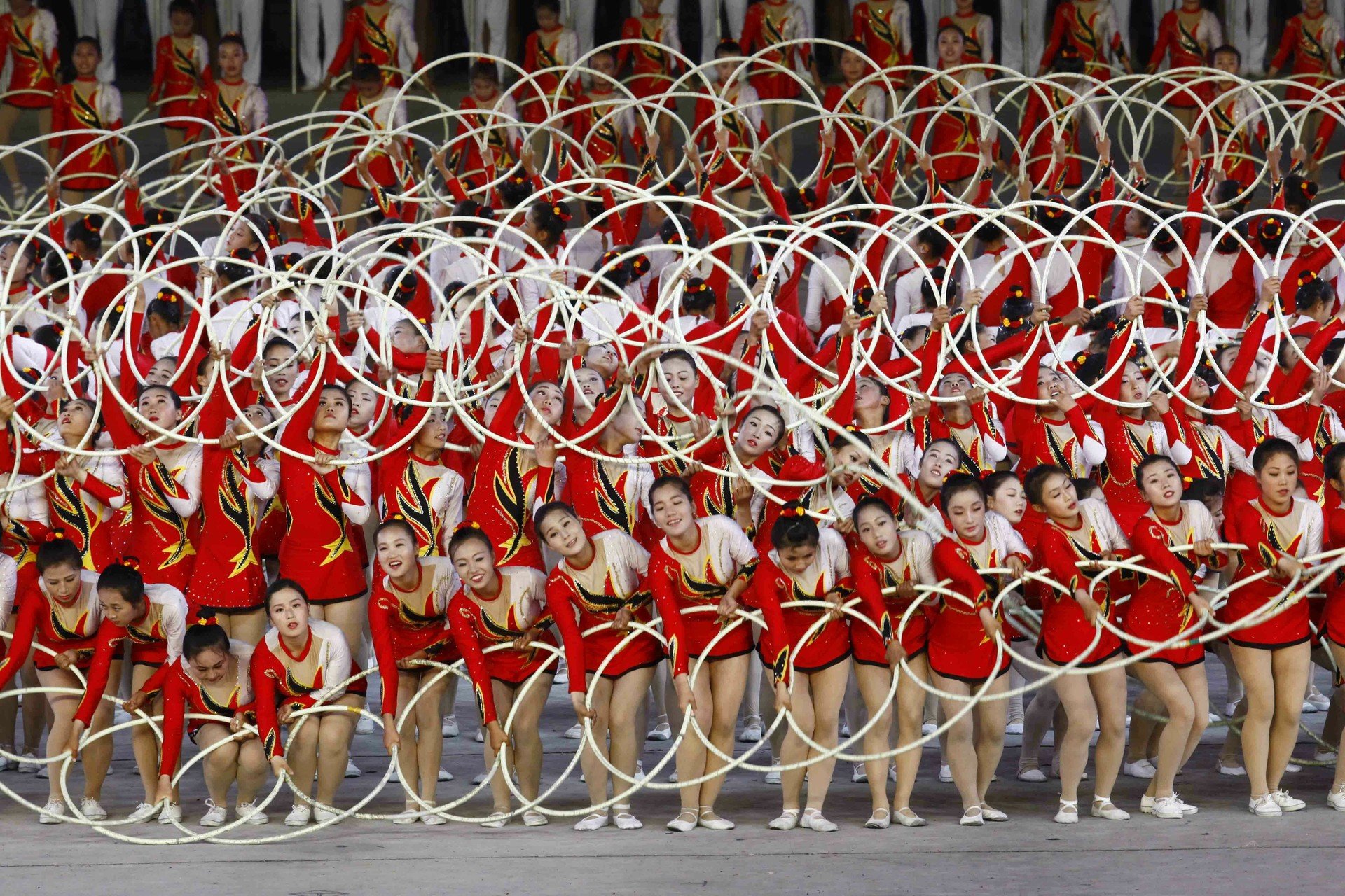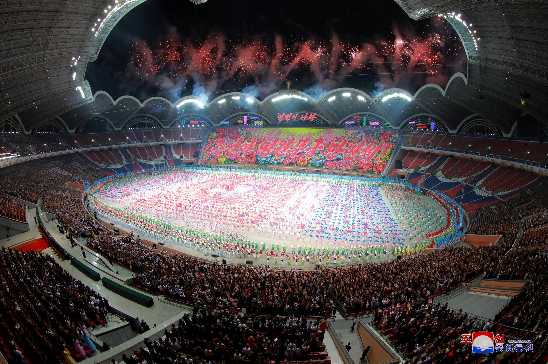La última edición de los famosos 'juegos de masas' País del Pueblo de Corea del Norte, fue inaugurada este lunes en el Estadio Primero de Mayo de Pionyang. El evento deportivo, que involucra a decenas de miles de artistas, luego fue suspendido temporalmente después de las fuertes críticas del líder Kim Jong-un, informa AFP.