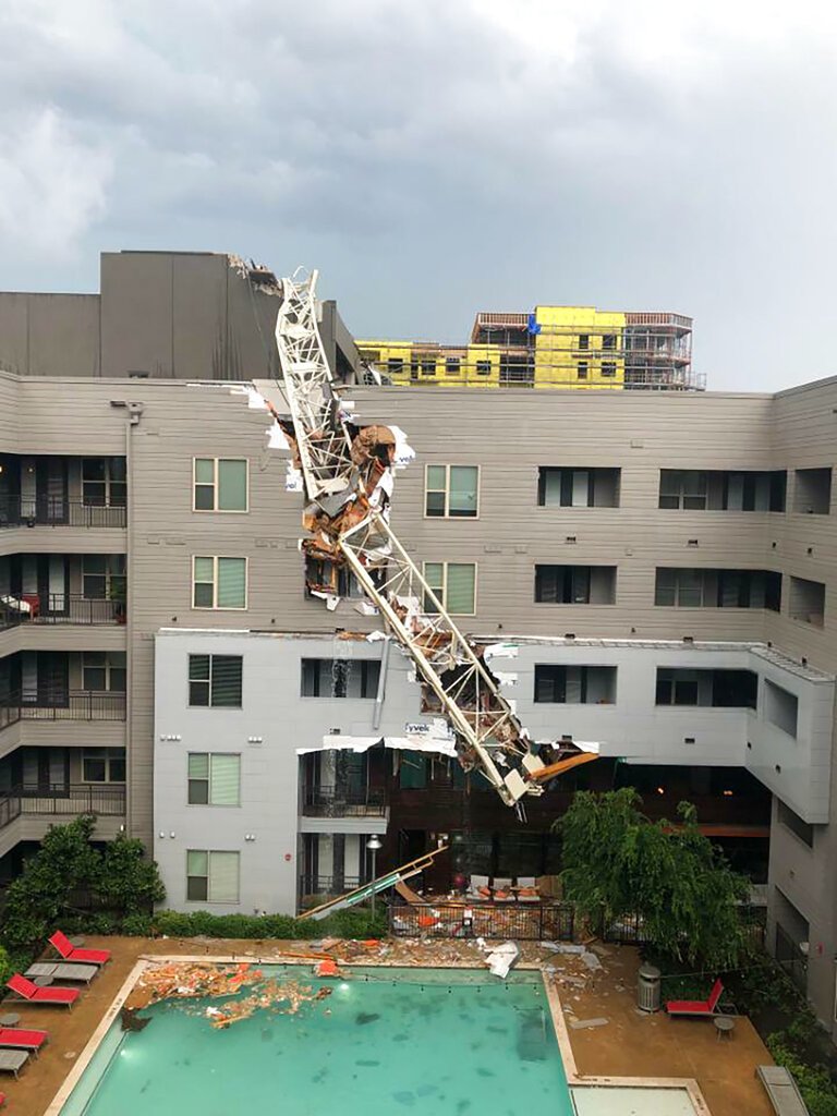 #BREAKING: 2 injured after crane collapses on downtown Dallas apartment building https://t.co/9zztrgUxznpic.twitter.com/AGRvpJWTUC