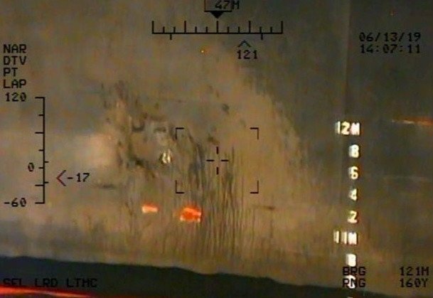 En las imágenes se aprecia una lancha rápida, presuntamente iraní, aproximándose al costado de un barco —supuestamente el Kokuka Courageous, japonés—, de cuyo casco los tripulantes de la embarcación menor retiran posteriormente un dispositivo que, según la versión estadounidense, corresponde a una mina naval sin explotar.