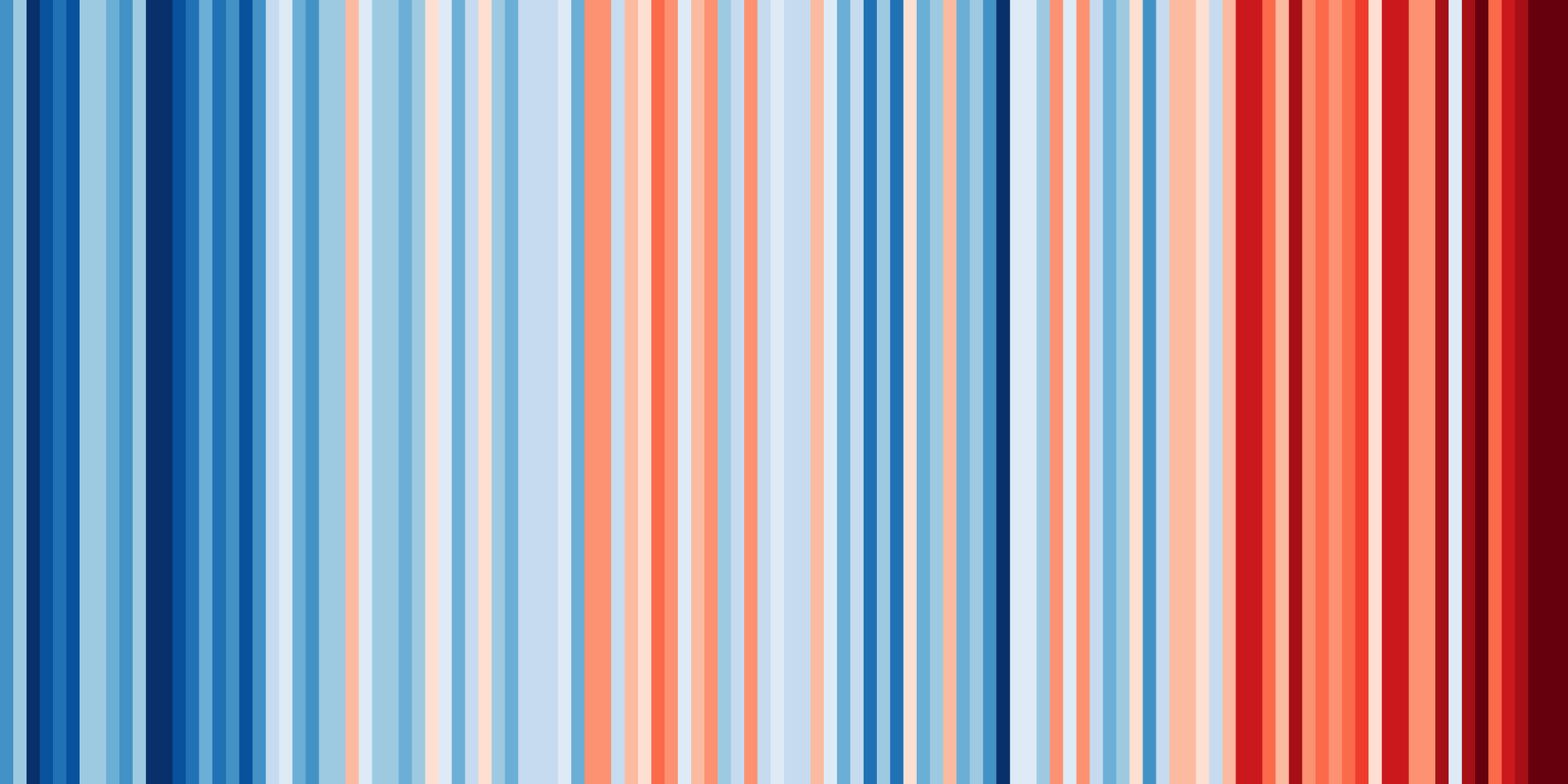 Por ejemplo, así son las 'rayas de calentamiento' para el conjunto de la Tierra entre los años 1850 y 2018: