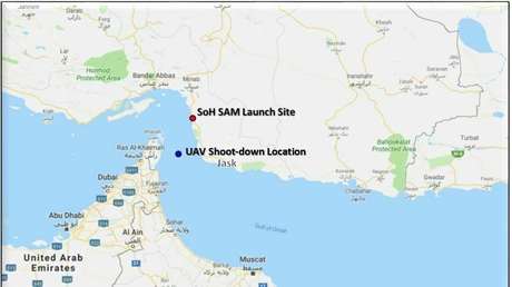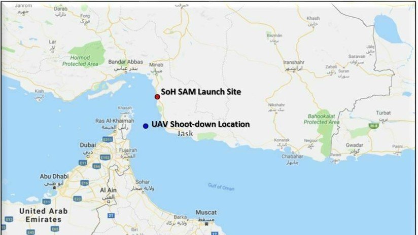 Según indicó el ministro de Exteriores iraní, Mohammad Javad Zarif, el aparato despegó del territorio de los Emiratos Árabes Unidos y voló casi cuatro horas con sus sistemas de identificación desactivados antes de que fuera impactado por un proyectil. El canciller afirma que segmentos del dron fueron recuperados en aguas territoriales iraníes.