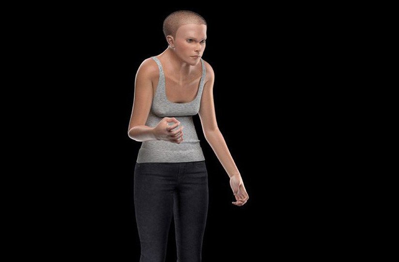 En la representación gráfica de este modelo corporal, denominado Mindy, también se puede apreciar que una mano permanece en posición inusual, como si sus dedos estuviesen siempre sosteniendo un teléfono. As¡mismo, el codo se mantiene en un ángulo de 90 grados.