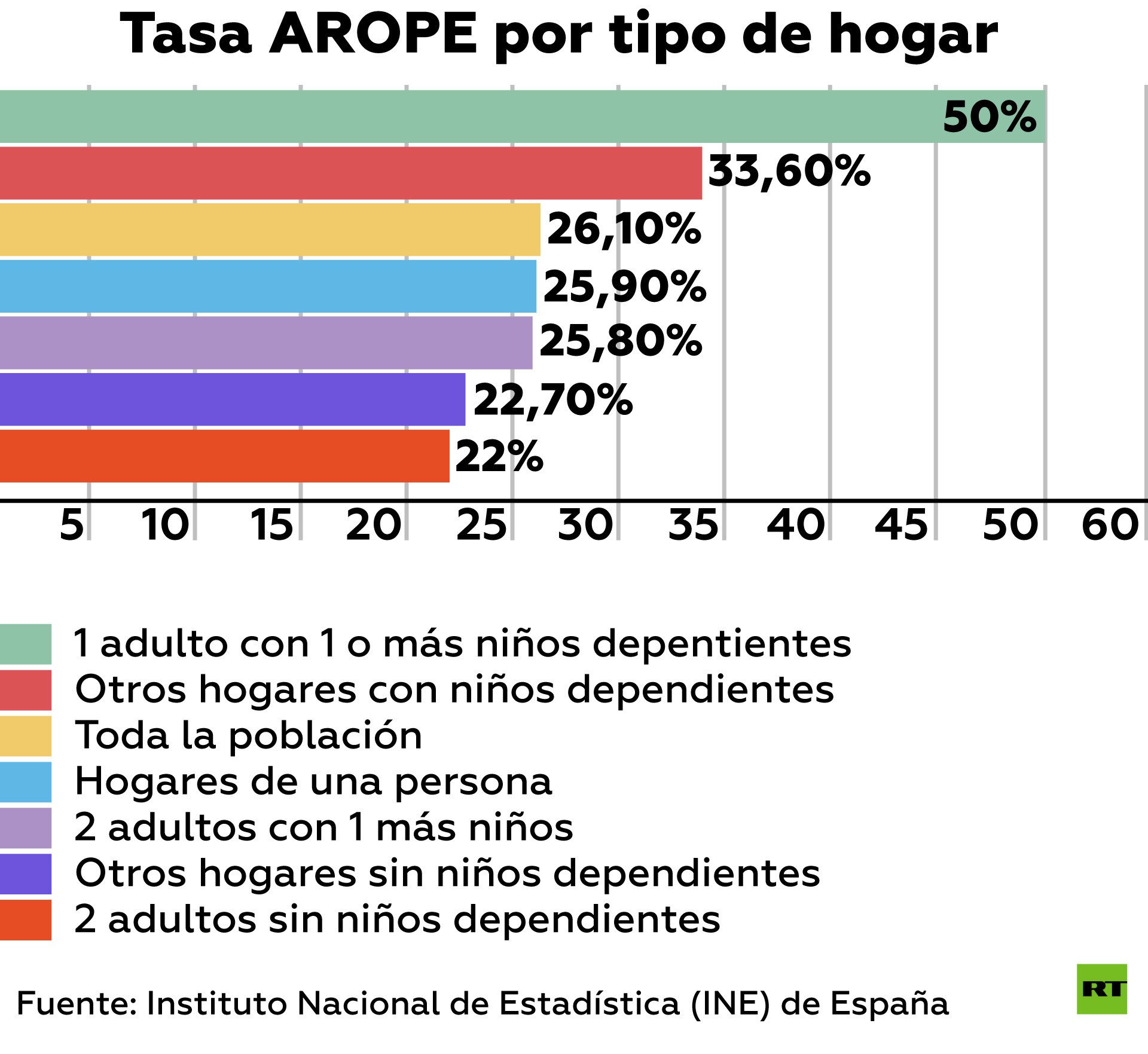 La tasa AROPE, que fue aumentando desde la crisis económica de 2008, alcanzó su cénit en 2013, cuando cuando comenzó a descender. Sin embargo, la cifra del indicador de riesgo de pobreza disminuye de manera especialmente lenta y sigue manteniéndose por encima del 20 %.