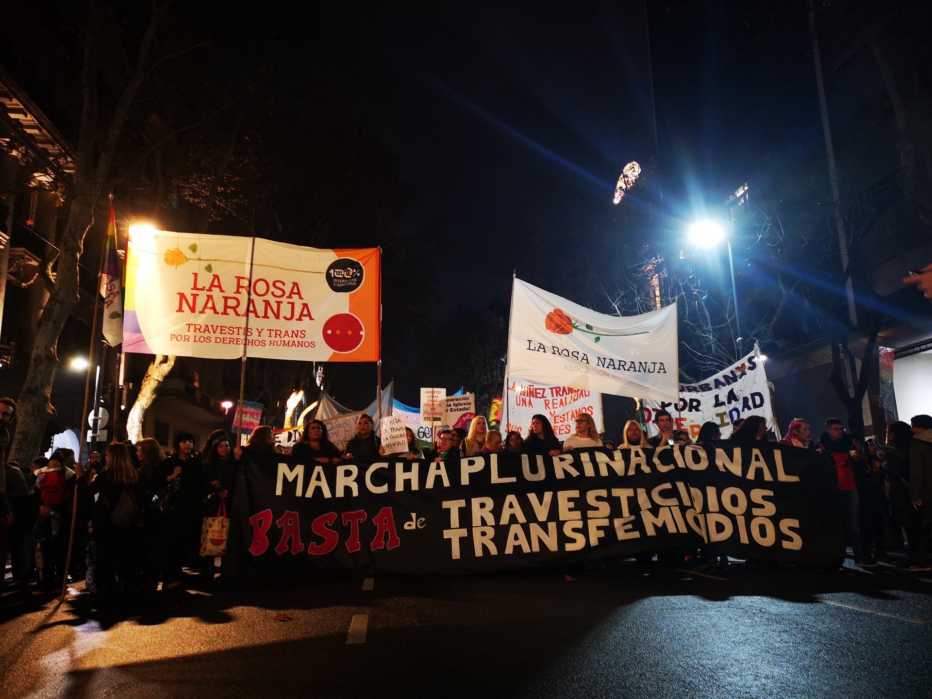 "Señor, señora, no sea indiferente: se mata a las travestis en la cara de la gente". Con ritmo y efusividad, las que cantan son trans, travestis, mujeres y disidencias en la cuarta marcha nacional contra los travesticidios y transfemicidios, que se realizó este viernes en Buenos Aires, Argentina. Es una movilización que nació en 2015, después del asesinato de Diana Amancay Sacayán. La fecha elegida para la movilización recuerda la mítica revuelta en el bar Stonewall, que cambió la lucha por los derechos LGBT+ y se convirtió en el día internacional del orgullo.