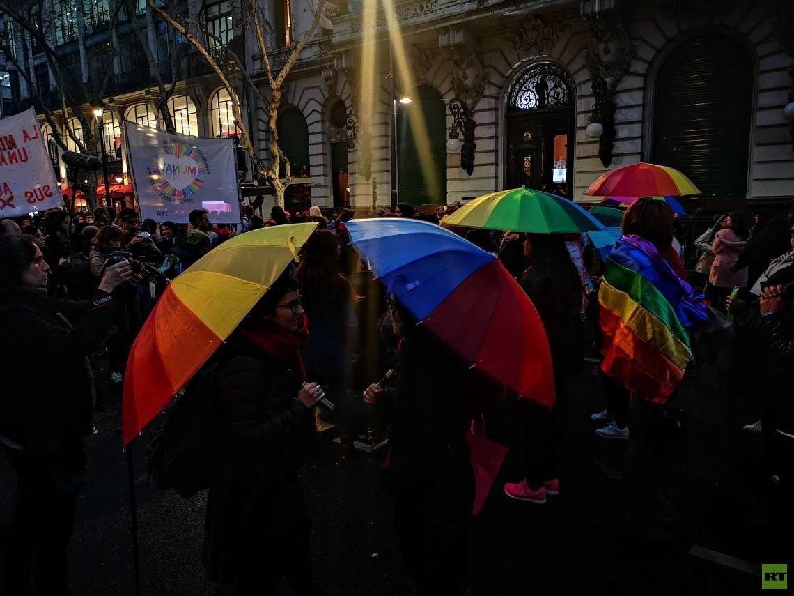 "No nos pararon los milicos (militares), ni la policía, ni la sociedad. Ahora no nos para la lluvia. No nos para nada", grita una chica trans desde un escenario móvil. Todas, todos y todes avanzan en medio de unas gotas que a veces son poquitas y cada tanto, bastantes. Ya es de noche cuando las columnas caminan desde la Plaza de Mayo hasta el Congreso Nacional.