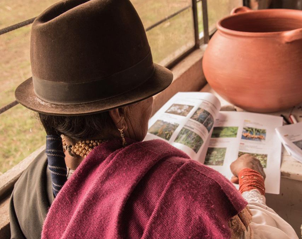 Pero estas dos emprendedoras no quisieron quedarse solas en este proceso. Junto a ellas trabajan mujeres de diferentes comunidades textileras de Ecuador, a las que llegaron cuando realizaban investigaciones sobre el estado de las técnicas textiles del país y su comercialización.