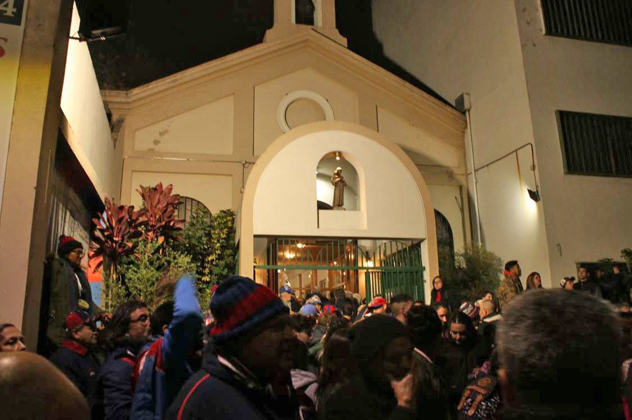 Desde la iglesia, comenzó la procesión de los hinchas a 'Tierra Santa', en las inmediaciones de la cancha y donde la dirigencia de la institución, liderada por su presidente Matías Lammens, convocó a todos los 'cuervos' para la fiesta azul y roja (colores oficiales de la camiseta).