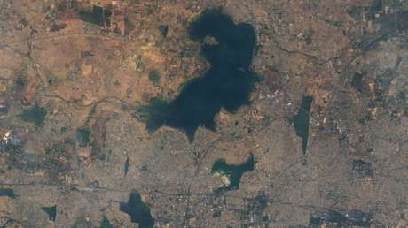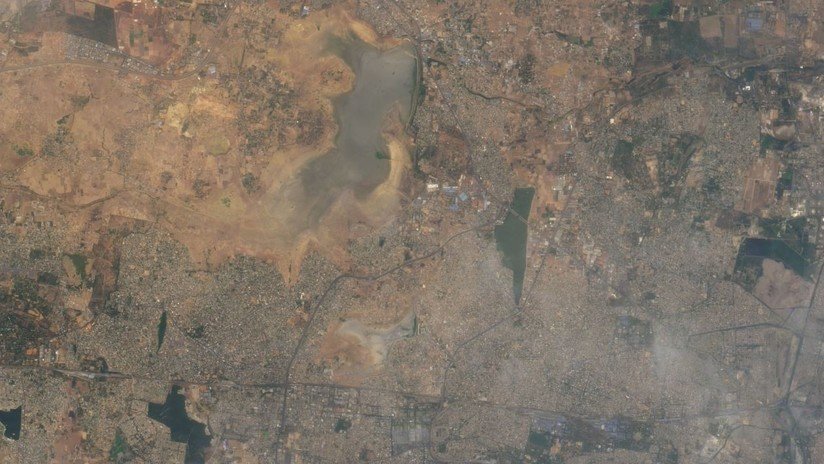 El Observatorio de la Tierra de la NASA difundió recientemente imágenes satelitales del 'antes' y 'después' de Puzhal, un lago alimentado por la lluvia y localizado en el estado de Tamil Nadu (India). Es uno de los cuatro embalses de la ciudad de Chennai, ubicada en el este del país, que se han secado después de dos años de escasas lluvias en la zona. Actualmente esta ciudad —que es hogar de 9 millones de personas— sufre una grave escasez de agua.