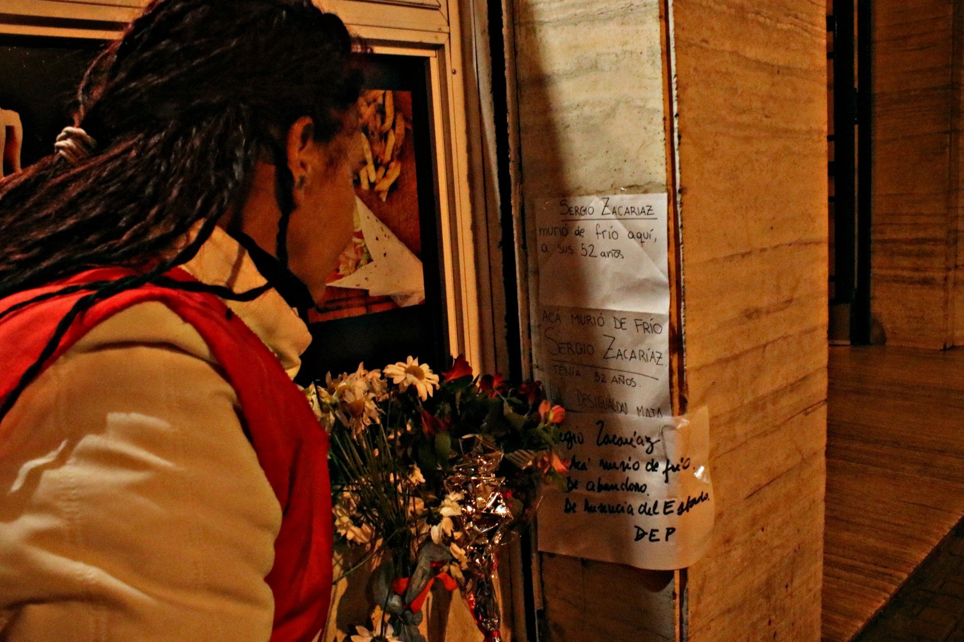 Son las diez de la noche de un miércoles de julio y Marcelo se retuerce de frío en las calles de Buenos Aires, Argentina. Está en situación de calle desde hace tres meses y hoy la temperatura bajará hasta los 2 ℃. "Será la jornada más fría del año", habían anunciado los medios locales desde temprano y aconsejaban resguardarse. A metros de donde está el—quien casualmente lleva el mismo apellido que el presidente del país, aunque descarta su parentesco—, resplandece de color rosa la Casa de Gobierno del país sudamericano. Hacia el otro lado hay un pequeño cartel que, entre dos ramos de flores, reza una de las principales problemáticas de la ciudad: "Acá murió de frío y de ausencia del Estado Sergio Zacaríaz, de 52 años. La desigualdad mata".