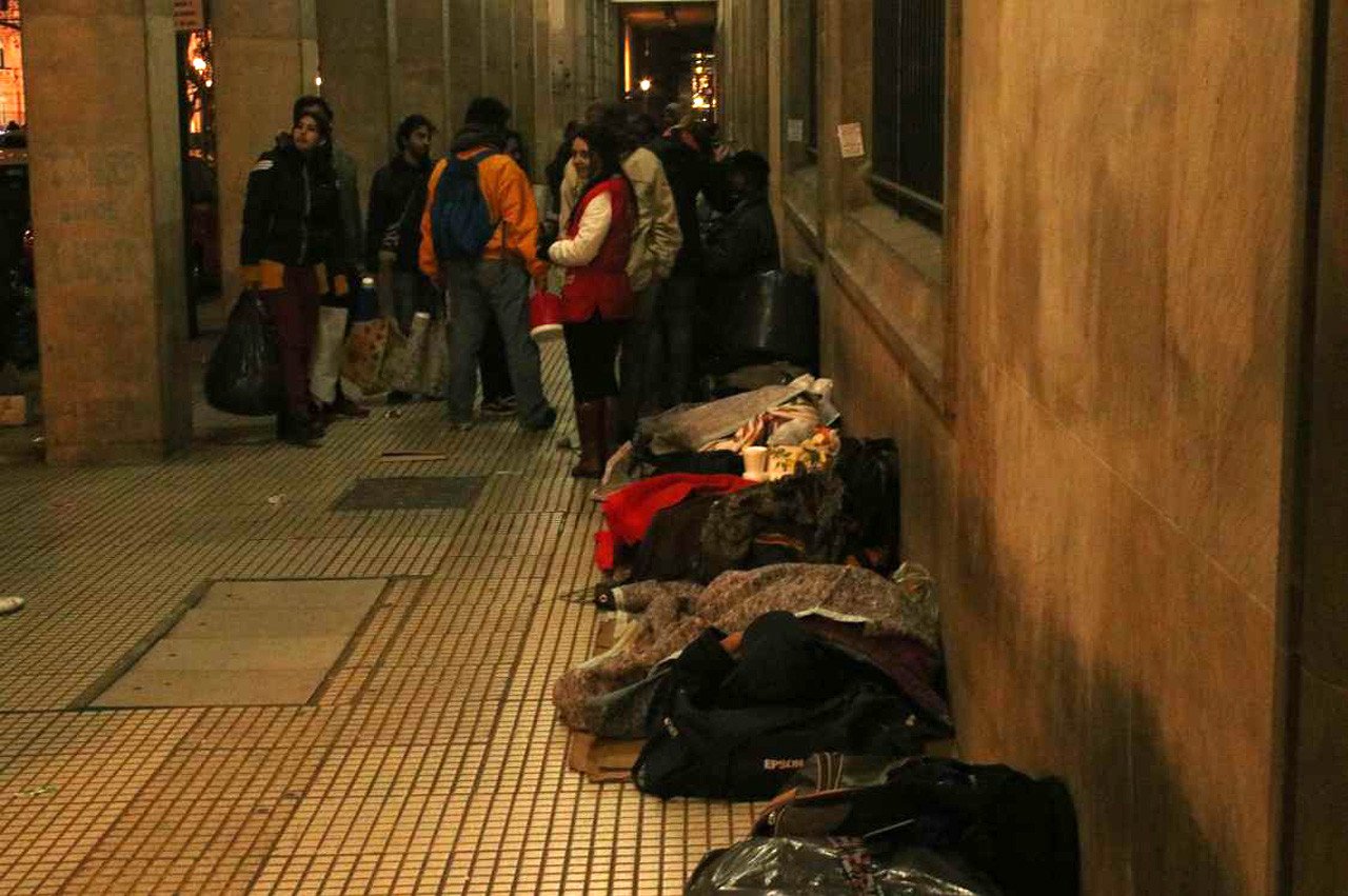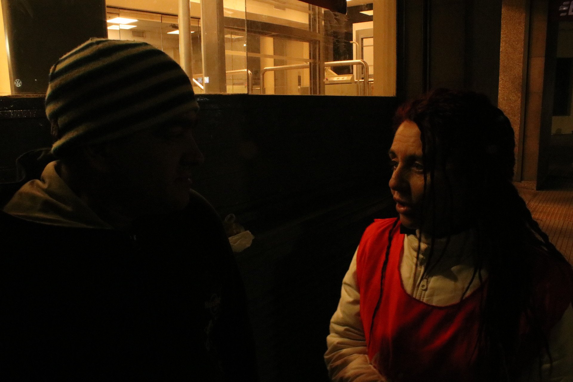 Por la misma vereda, al llegar a la esquina, Alejandro le hace señas a Sonia. Lleva siete meses durmiendo al lado de una sucursal bancaria. También rechaza ir a los centros de asistencia estatal y temporaria del Gobierno, donde solo se permite pasar una única noche y se debe dejar el espacio a primera hora del siguiente día.
