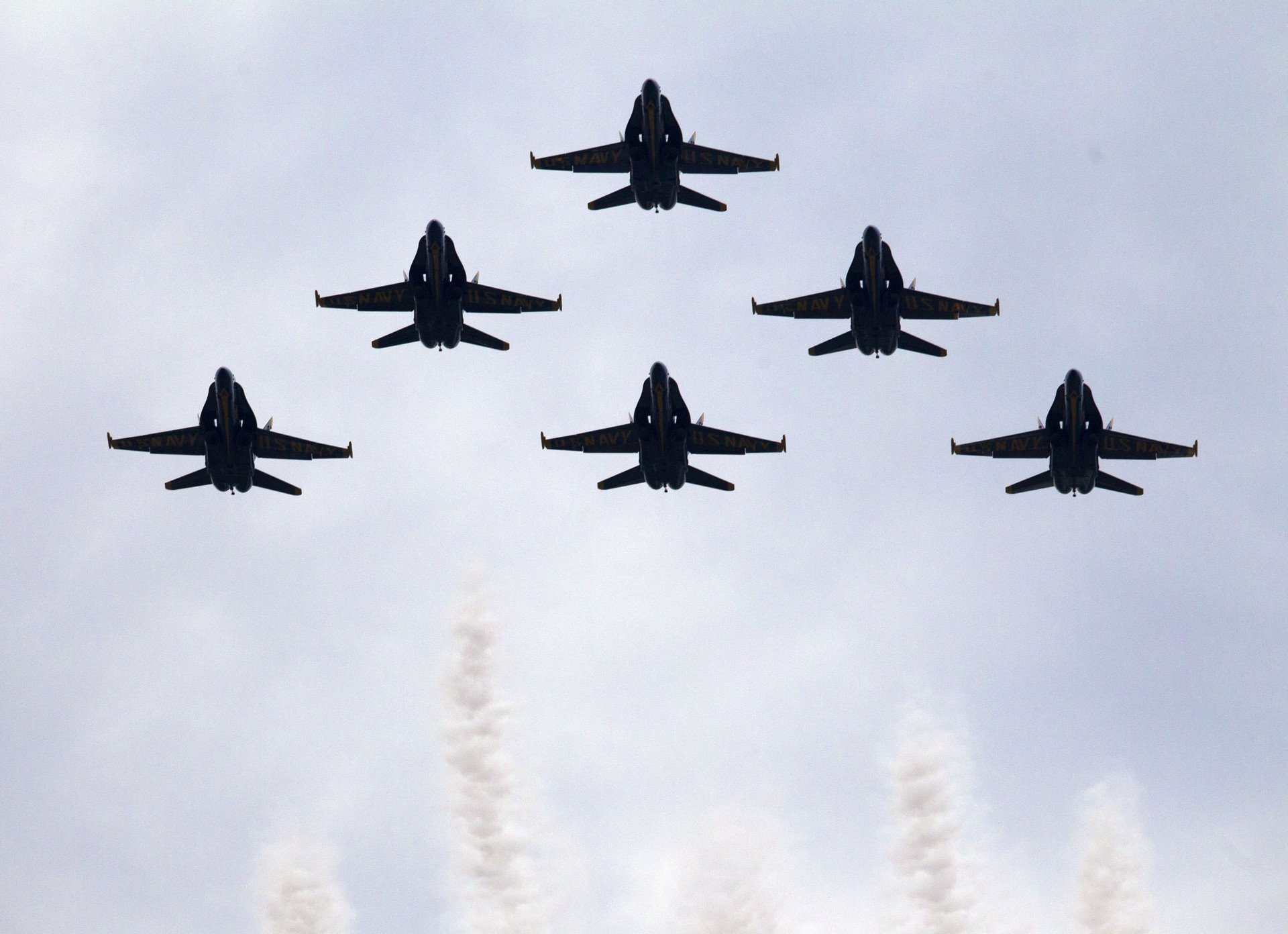 - Seis F-18 del escuadrón aéreo Blue Angels