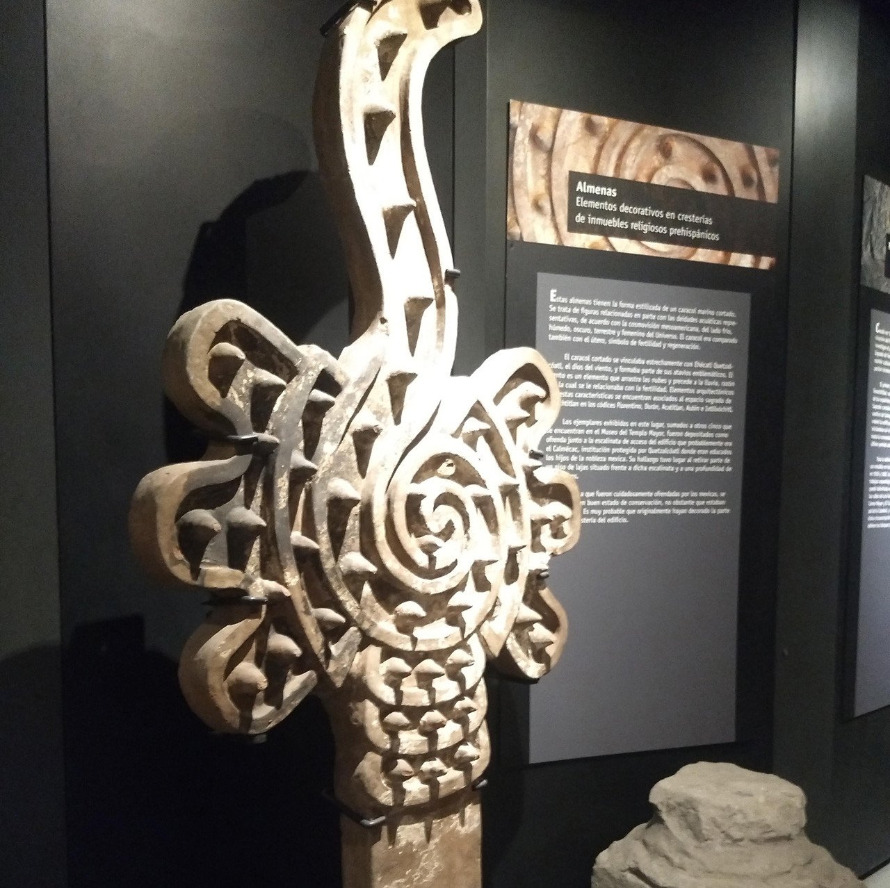"Cada calmécac estaba encomendado o bajo la protección de un dios, con base en las fuentes coloniales, pero también se puede saber debido a la iconografía", apunta Marta. En el caso del vestigio visitado, estaba asociado a Ehécatl-Quetzalcóatl, el dios del viento, y corresponde al reinado de los dos últimos gobernantes mexicas, Moctezuma II y su predecesor Ahuízotl, alrededor de 1486-1519.