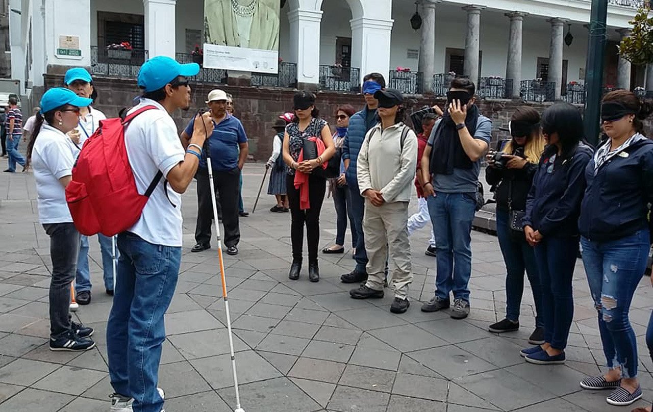 Personas con diferentes grados de discapacidad visual se han convertido en guías turísticos en el Centro Histórico de Quito, capital de Ecuador.