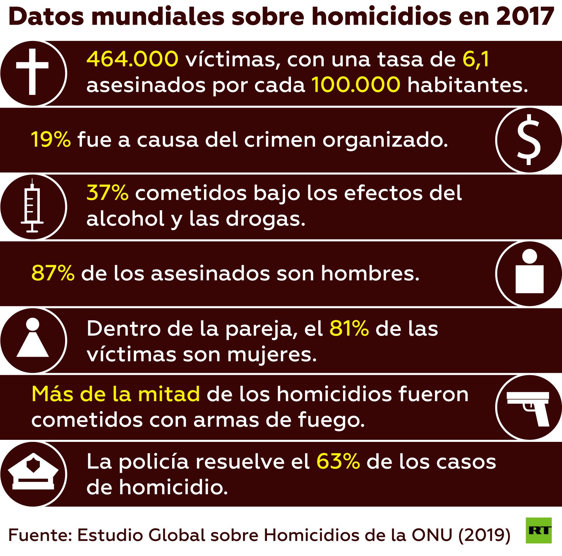 - El 63 % de los casos de homicidio de todo el mundo son resueltos por la Policía. Sin embargo, en América, ese porcentaje desciende hasta el 43 %.