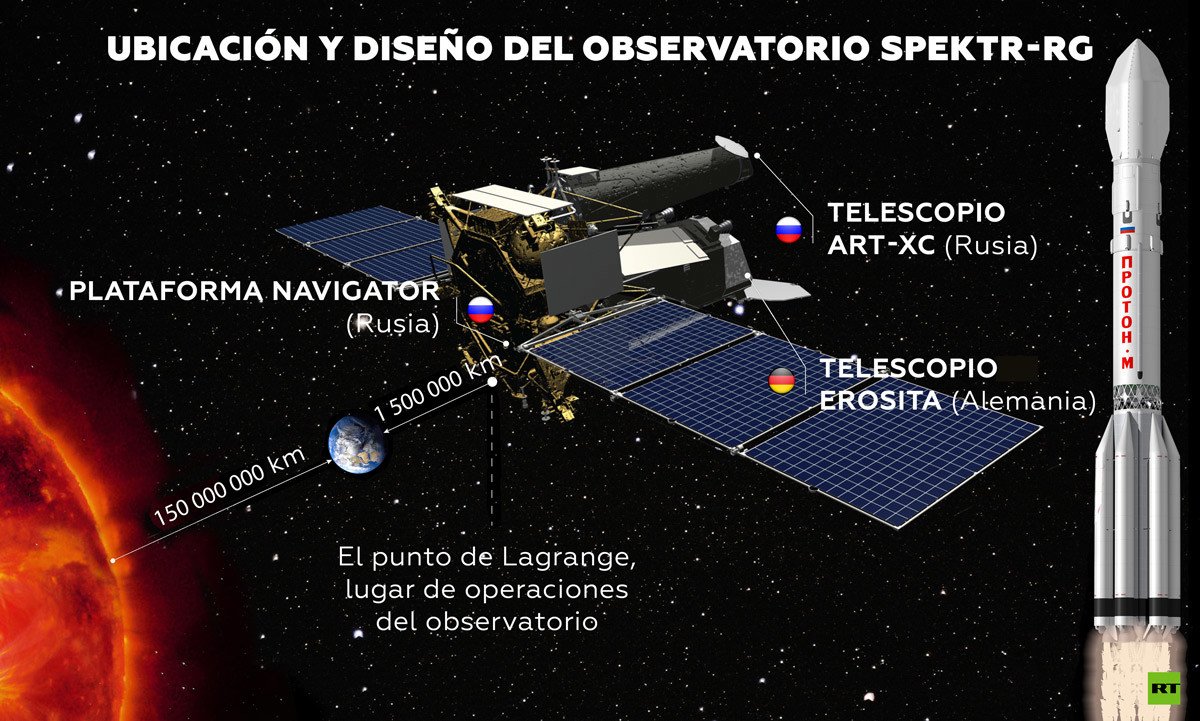 El Spektr-RG navegará a una órbita estable en el espacio llamado punto de Lagrange (específicamente, L2), donde las fuerzas gravitacionales de dos objetos grandes, en este caso el Sol y la Tierra, se equilibran entre sí. Esta ubicación permitirá al Spektr-RG realizar sus observaciones mientras usa una cantidad mínima de combustible.