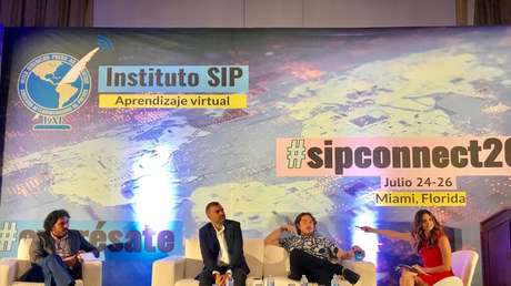 El director adjunto de Planificación y director de Deportes de Ruptly, Mauro Torres, habló sobre el lanzamiento de la versión en español este miércoles en un panel de discusión en la conferencia de medios digitales SIPConnect en Miami, EE.UU., junto con la periodista, presentadora y analista Cathy Areu.