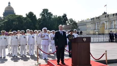 "El heroísmo de los marineros, el talento de los comandantes de flota y los especialistas en la construcción de barcos, la firmeza de los científicos, la audacia de los descubridores depararon a Rusia una gran gloria marina. No solo vamos a mantener este nivel, vamos a ir más allá, vamos a construir una flota única por sus capacidades, destinada a una perspectiva histórica a largo plazo, la flota de una fuerte potencia soberana", ha subrayado el presidente ruso.