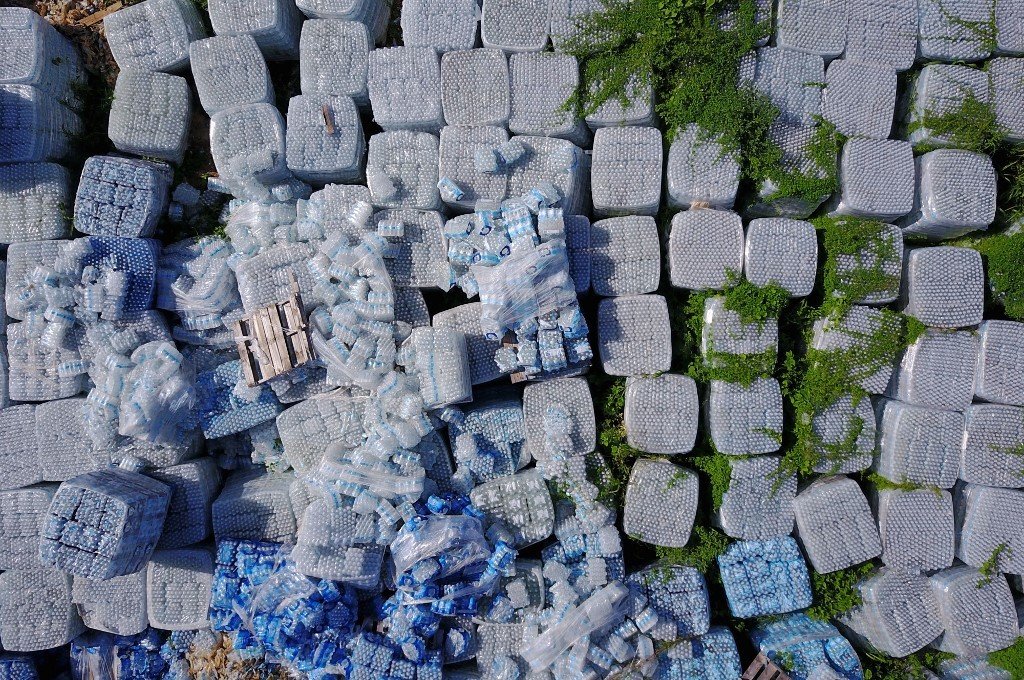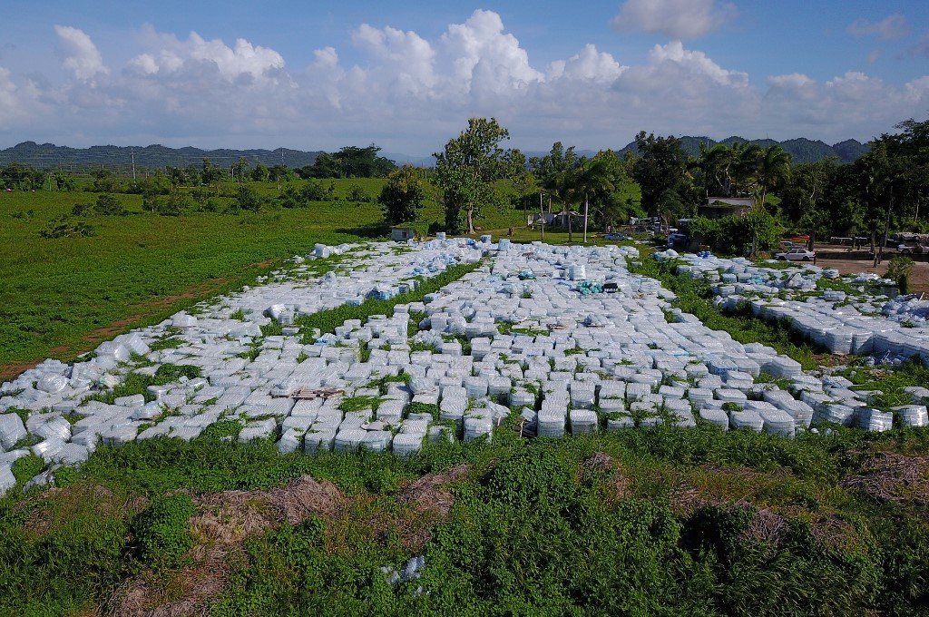 En una serie de fotografías aéreas difundidas por la agencia AFP, se pueden ver los incontables envases de agua potable que permanecen apilados en tierras de cultivo de El Dorado, cerca de la ciudad de San Juan.