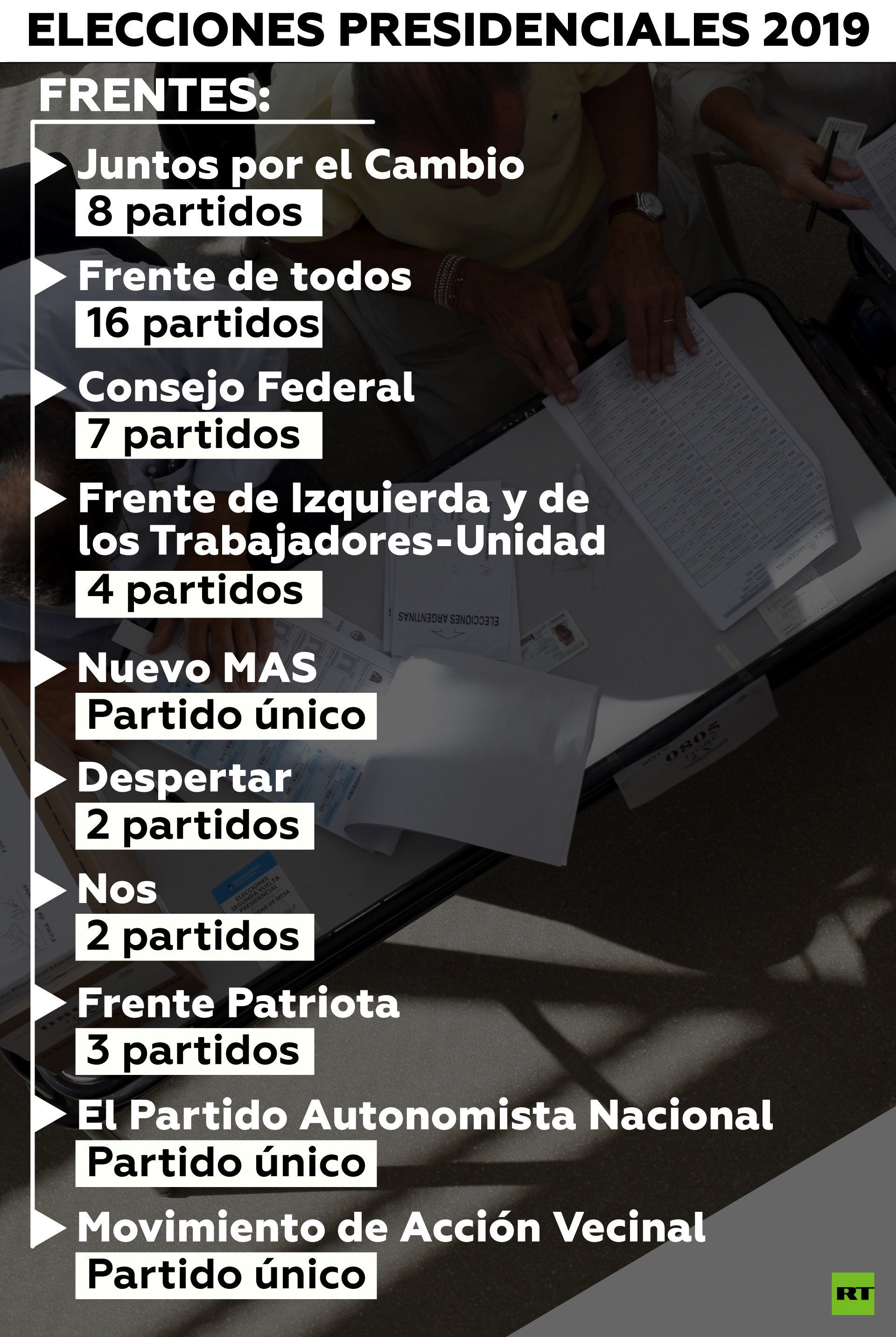 Las elecciones Primarias Abiertas Simultáneas y Obligatorias (PASO) de Argentina tendrán lugar el domingo 11 de agosto y servirán para conocer cómo se posicionan las alianzas de cara a los comicios definitivos de octubre, cuando se elegirá al próximo presidente del país sudamericano para los siguientes cuatro años. Se trata de una votación previa, donde no se definirán cargos políticos, pero sí se determinarán cuáles serán los bloques que podrán postularse a los comicios presidenciales: aquellas agrupaciones que no superen el 1,5 % de los votos se quedarán en el camino, con eliminación directa.