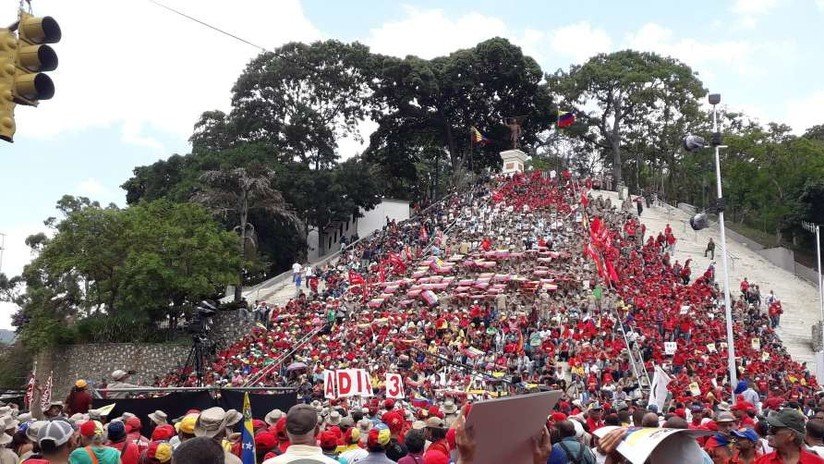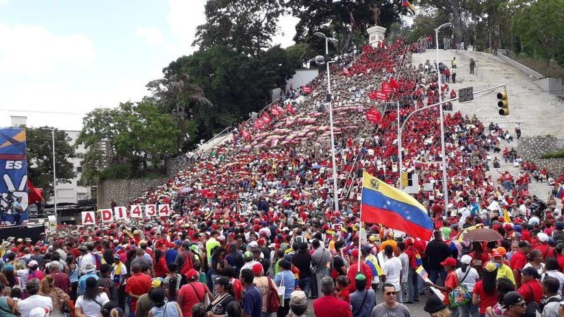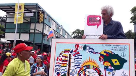 En la Plaza Diego O'Leary, donde desembocaría la marcha procedente de Plaza Sucre, en el oeste, los asistentes gritaban consignas como "No más Trump en Venezuela, saca tus manos de ella" y bailaban al ritmo de grupos musicales.
