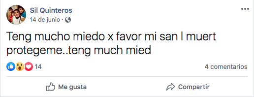 Hace unos meses, Silvia relató en su muro de Facebook el infierno que vivía tras la ruptura con Javier. En varias publicaciones, expresó que tenía "mucho miedo", y al menos en una ocasión su expareja dejó un mensaje amenazante en sus redes sociales.