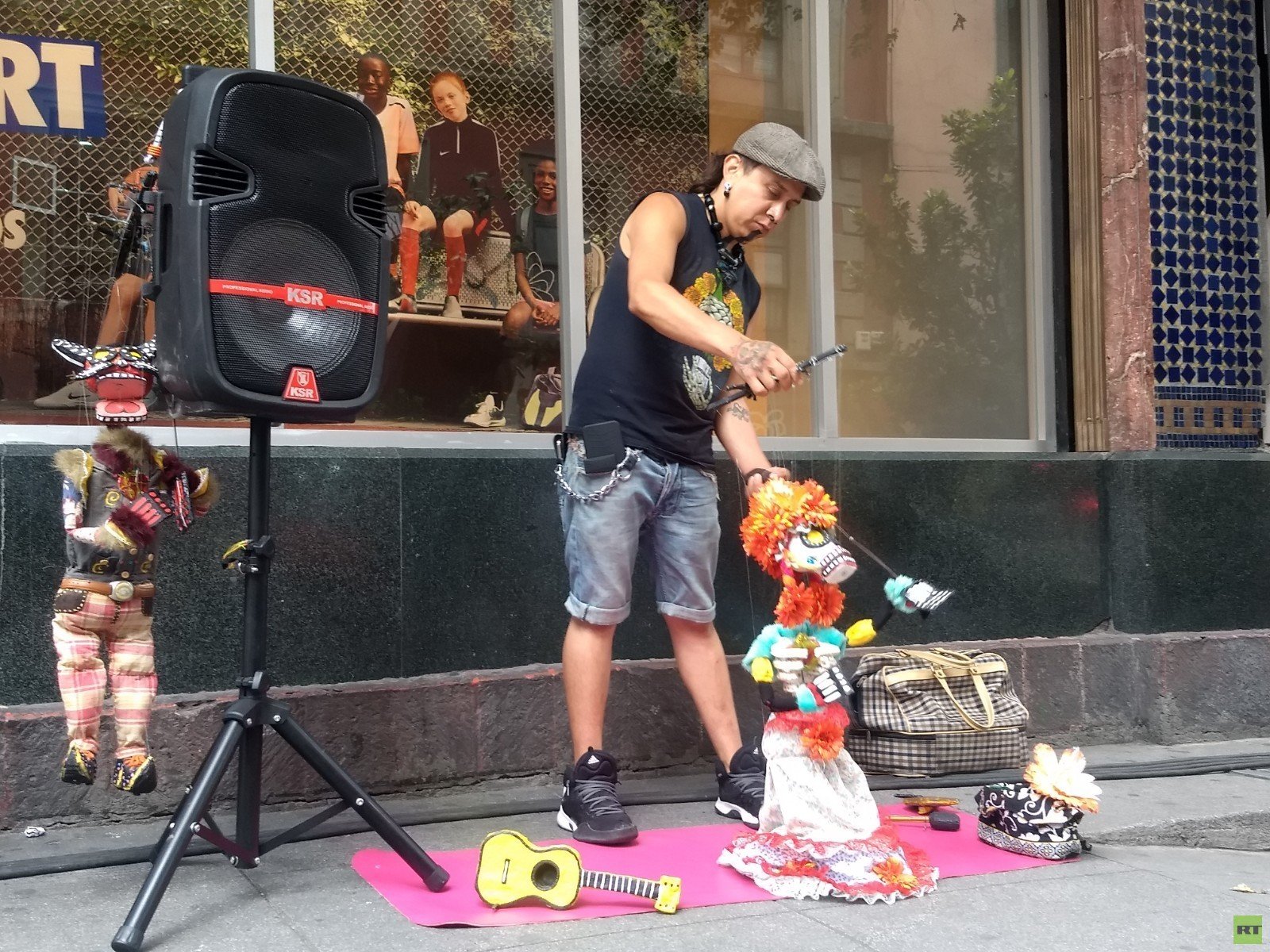 La tropa forma parte de 'Carnavala', la compañía de marionetas creada por Javier Bautista Escalante, 'Javo nahual'. "Cada títere puede llevar sus posibilidades a otros puntos, ellos comenzaron cantando y desarrollaron el baile y la capacidad de tocar instrumentos. Ahora, por ejemplo, 'Chamoy' está aprendiendo a tocar el violín y el acordeón, y 'Cata' a utilizar un sahumador (un objeto que lanza humo aromático para purificar) y cantos tradicionales", cuenta el artista, que todos los días se adentra en las venas de la gran urbe desde el municipio de Coacalco, Estado de México, tras un recorrido de poco más de 34 kilómetros.
