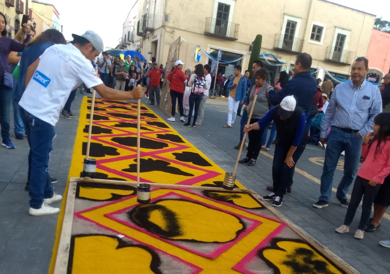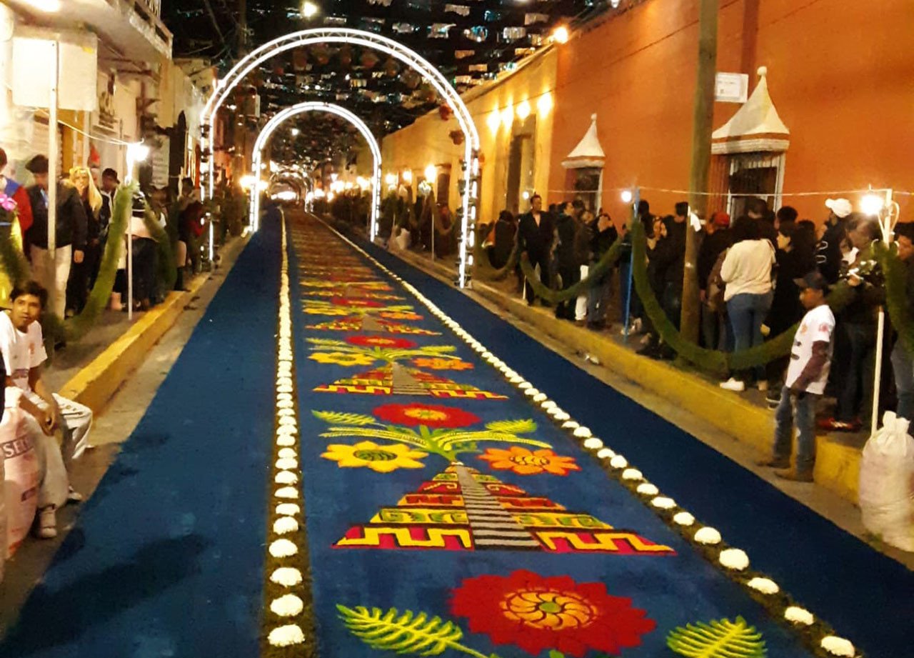 Como don José, decenas de artesanos se apuestan a lo largo de casi 8 kilómetros para construir un camino de tapetes multicolores, un proceso que arranca alrededor de las 3:00 de la tarde del 14 de agosto y concluye entre 4:00 y 5:00 de la madrugada del día siguiente para, horas después, ser destruidos. Por eso se le denomina 'arte efímero'.