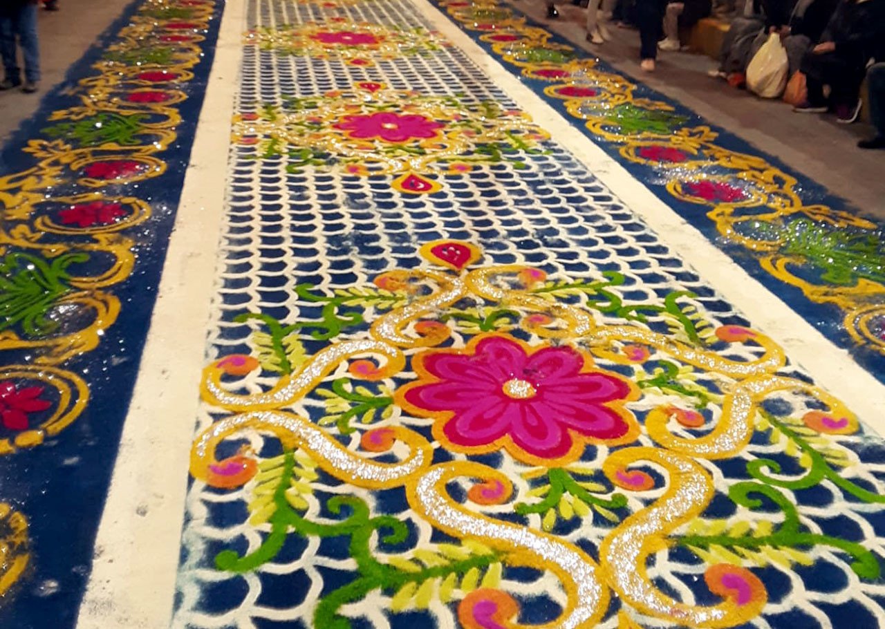Así, la noche del 14 de agosto de cada año, los cerca de 95.000 habitantes de la ciudad cambian sus hábitos para no dormir y cambiar los diseños de los tapetes, así como los adornos en las calles donde son colocados.