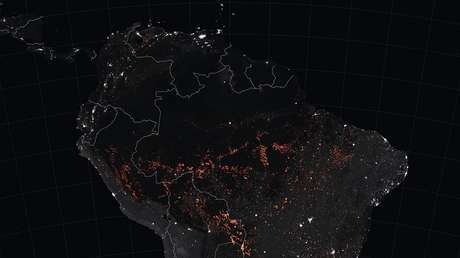 Las imágenes fueron tomadas por el espectrorradiómetro de imágenes de resolución moderada (MODIS, por sus siglas en inglés), y comprenden todos los focos registrados en la selva amazónica brasileña entre el 15 y el 22 de agosto, según precisa Douglas Morton, jefe del Laboratorio de Ciencias Biosféricas en el Centro de Vuelo Espacial Goddard de la NASA.
